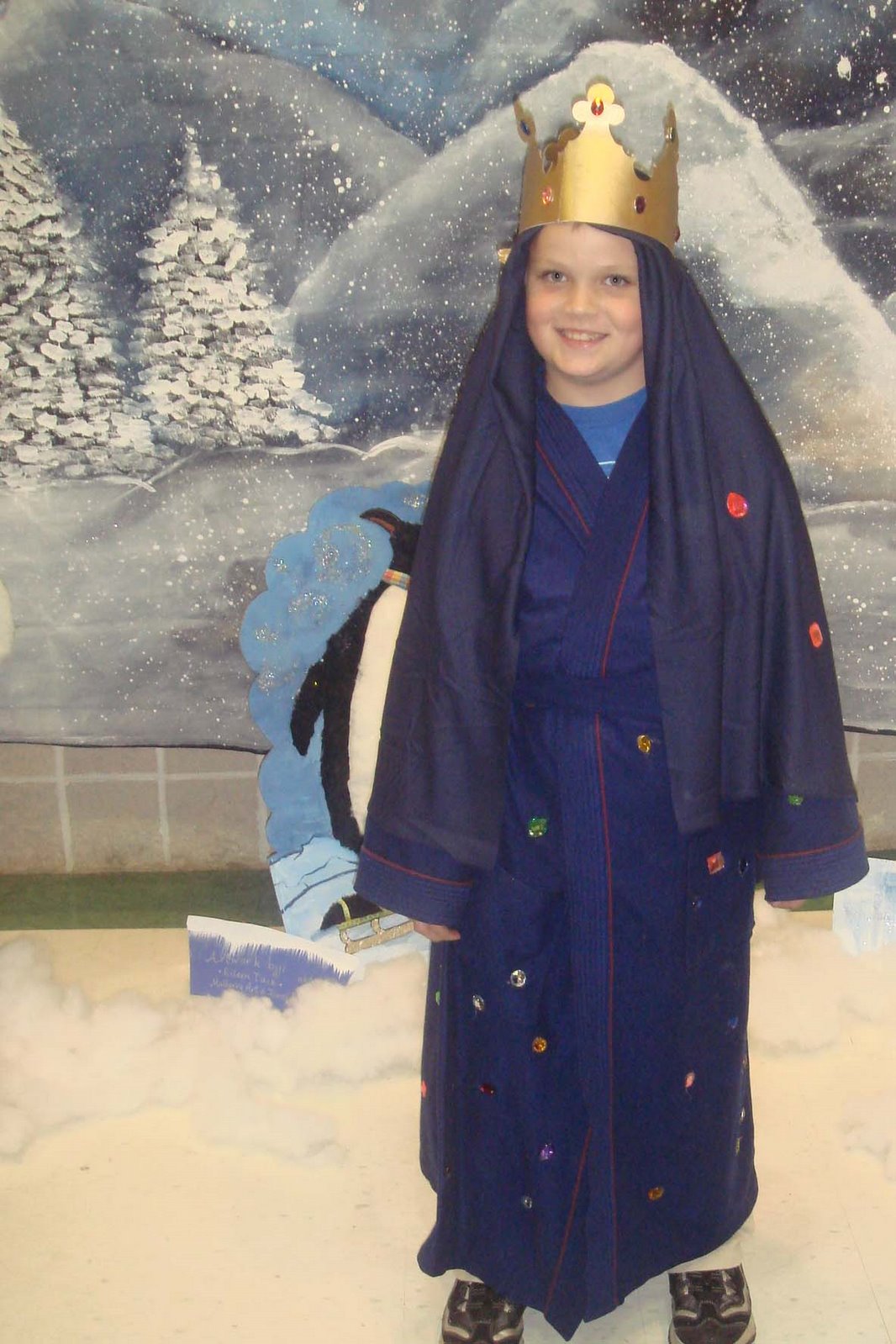 Zachary had his class musical on Tuesday night. Up on the Housetop was a musical depicting all the different ways people celebrate Christmas. It was very cute and well done. Zachary was the Wiseman that carried Gold. Don't tell anyone but the gold coins he carried were Hanukkah coins. It was all I could find and I knew noone would be able to tell from a distance. Zachary did an excellent job of presenting the gold to baby Jesus.